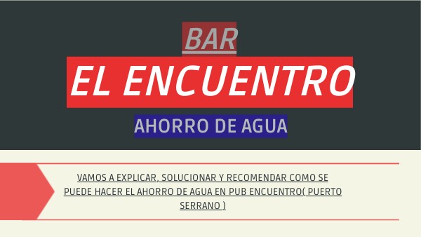 Vamos a explicar, solucionar y recomendar como se puede hacer el ahorro de agua en pub encuentro( puerto serrano )