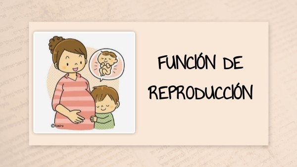 Mediante la función de reproducción se tienen seres vivos que se parecen a nosotros, y de esa forma se perpetua la especie. En la función de reproducción intervienen los aparatos reproductores que son diferentes en mujeres y hombres.