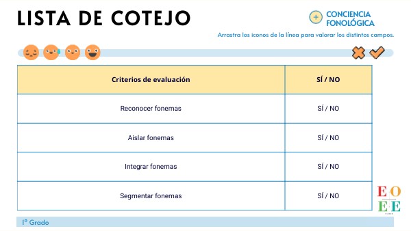 Arrastra los iconos de la línea para valorar los distintos campos.