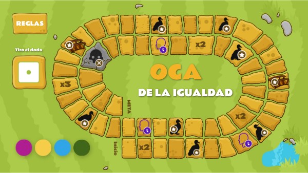 - Cada jugador/a debe elegir una ficha y lanzar el dado (sólo hay que pinchar sobre el dado digital y esperar a que se detenga).