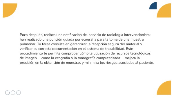 En el laboratorio, organizas las muestras recibidas: biopsias, piezas quirúrgicas y líquidos corporales extraídos mediante técnicas invasivas. Clasificas cada una según su tipo y finalidad, identificando las diferencias en su manipulación, conservación y destino. Este proceso te enseña que la variedad de muestras obtenidas por procedimientos invasivos requiere un conocimiento profundo de sus características y de los protocolos específicos para su correcta gestión.