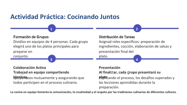 La cocina en equipo fomenta la comunicación, la creatividad y el respeto por las tradiciones culinarias de diferentes culturas.