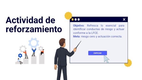 Objetivo: Refresca lo esencial para identificar conductas de riesgo y actuar conforme a la LFCE. Meta: riesgo cero y actuación correcta.