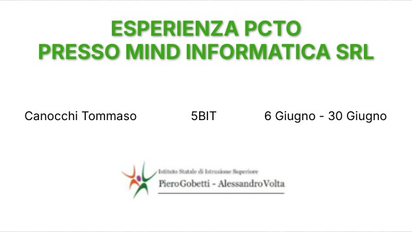 ESPERIENZA PCTO PRESSO MIND INFORMATICA SRL
