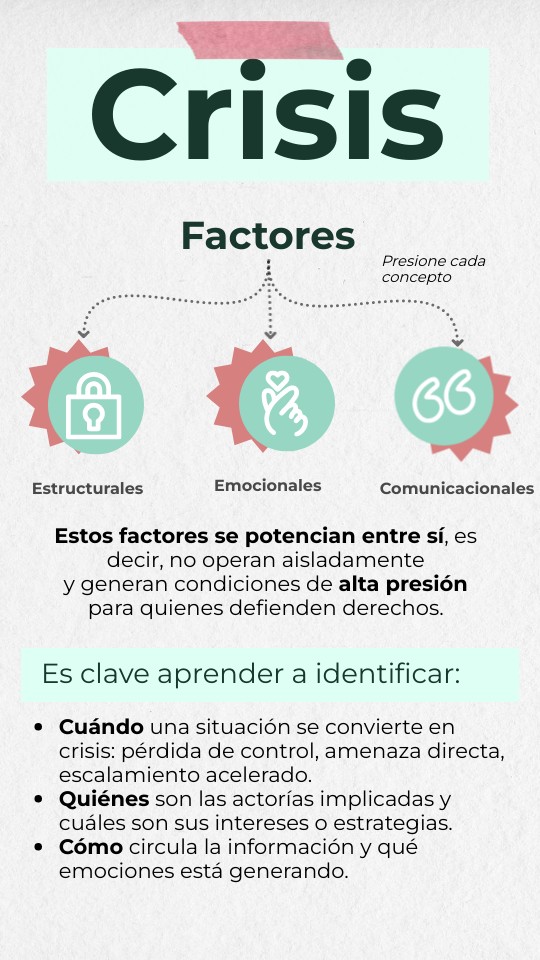 - Cuándo una situación se convierte en crisis: pérdida de control, amenaza directa, escalamiento acelerado.