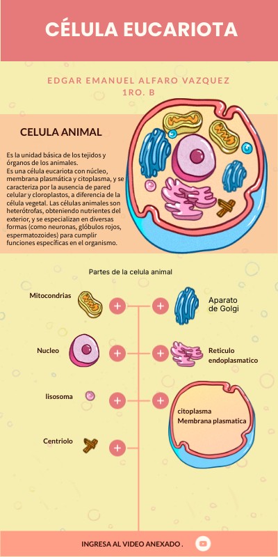 Es la unidad básica de los tejidos y órganos de los animales. Es una célula eucariota con núcleo, membrana plasmática y citoplasma, y se caracteriza por la ausencia de pared celular y cloroplastos, a diferencia de la célula vegetal. Las células animales son heterótrofas, obteniendo nutrientes del exterior, y se especializan en diversas formas (como neuronas, glóbulos rojos, espermatozoides) para cumplir funciones específicas en el organismo.