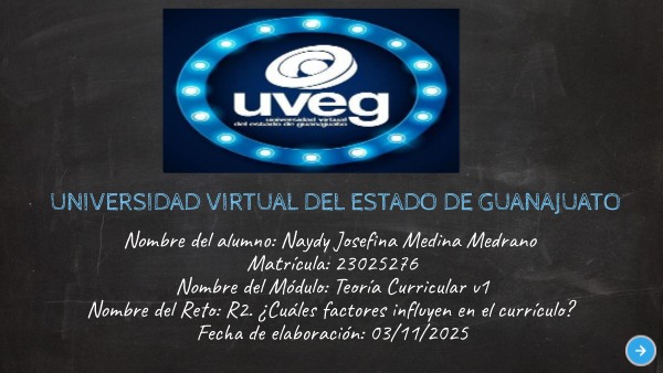Nombre del alumno: Naydy Josefina Medina Medrano Matrícula: 23025276 Nombre del Módulo: Teoría Curricular v1 Nombre del Reto: R2. ¿Cuáles factores influyen en el currículo? Fecha de elaboración: 03/11/2025
