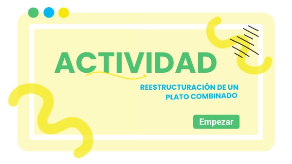 Piensa y selecciona un plato combinado que ya conozcas y reestructúralo para darle una nueva perspectiva creativa, ya sea a través de una nueva visión en la selección de productos, elaboraciones, composición en el emplatado, etc.
