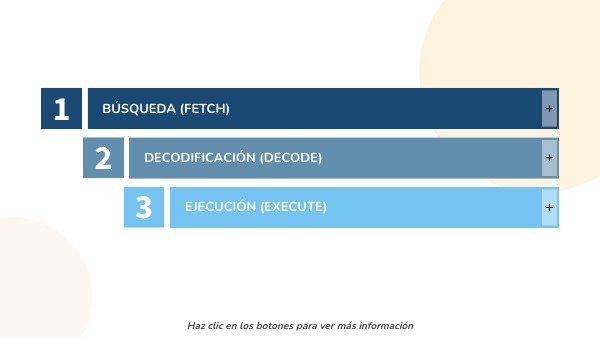 Se realizan las operaciones especificadas, que pueden implicar cálculos en la ALU, acceso a memoria o comunicación con periféricos.