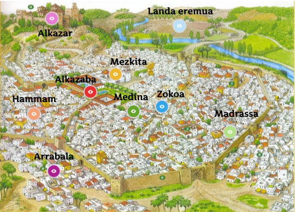 Medina harresiaren barruan kokatutako hiri zatia zen. Alcazaba bat zuen herritarrak defendatzeko eta hainbat auzo. Medina guztietan funtsezko eraikin eta espazio publikoak zeuden; hala nola, mezkita nagusia, zokoa edo bainu publikoak