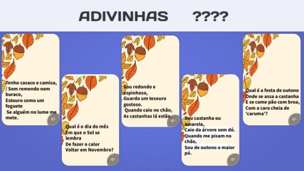 Sou castanha ou amarela, Caio da árvore sem dó. Quando me pisam no chão, Sou de outono o maior pó.
