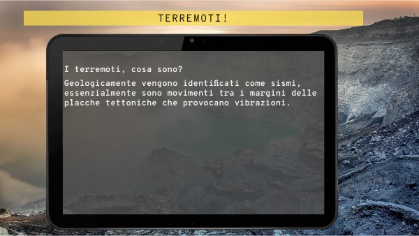 I terremoti, cosa sono?Geologicamente vengono identificati come sismi, essenzialmente sono movimenti tra i margini delle placche tettoniche che provocano vibrazioni.