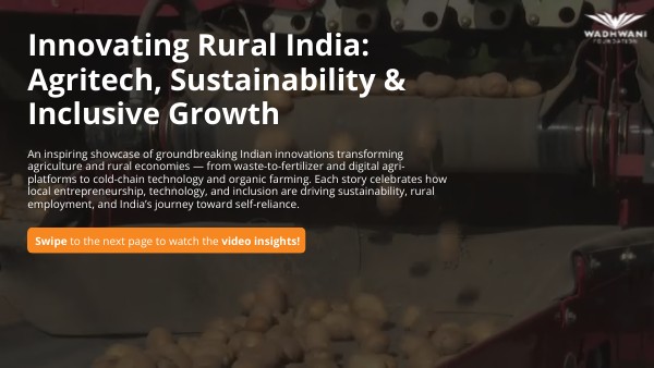 An inspiring showcase of groundbreaking Indian innovations transforming agriculture and rural economies — from waste-to-fertilizer and digital agri-platforms to cold-chain technology and organic farming. Each story celebrates how local entrepreneurship, technology, and inclusion are driving sustainability, rural employment, and India’s journey toward self-reliance.