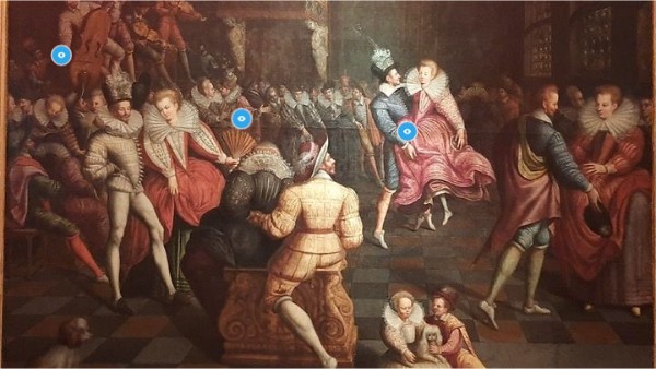 As roupas são elaboradas, com golas altas rendadas, mangas bufantes, tecidos de seda e bordados metálicos, refletindo o luxo e a sofisticação da corte.