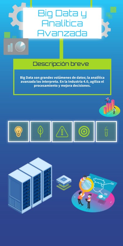 Big Data son grandes volúmenes de datos; la analítica avanzada los interpreta. En la Industria 4.0, agiliza el procesamiento y mejora decisiones.