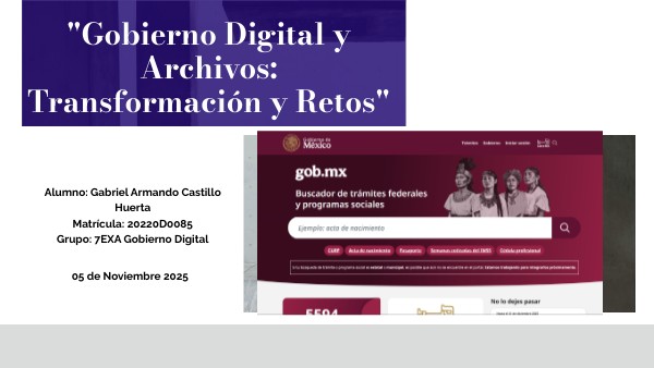 Alumno: Gabriel Armando Castillo HuertaMatrícula: 20220D0085 Grupo: 7EXA Gobierno Digital