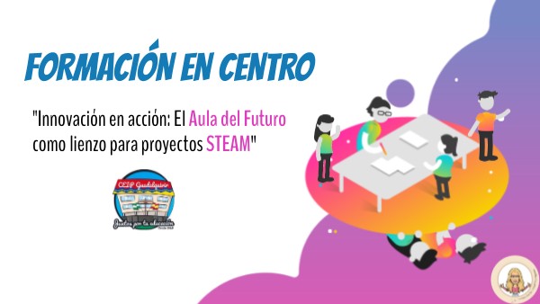 Formación en centro centrada en elAula del Futuro.Las actividades STEAM 4.0 son obligatorias, ya que es un programa de oficio. Por ello, uniremos ambos programas: Aula del Futuro será nuestro lienzo y STEAM 4.0 será el contenido que le dé vida.