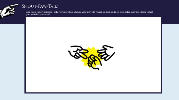 Like Rock, Paper, Scissors - only way more fun! Choose your move to reveal a question. Each pick hides a surprise topic to test your veterinary smarts!