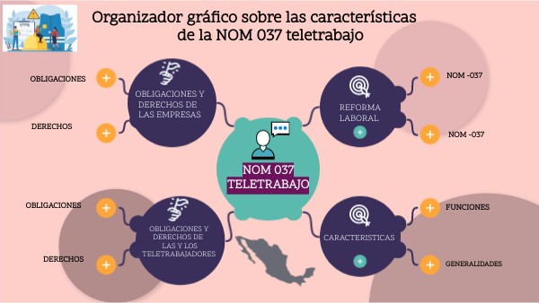 Organizador gráfico sobre las características de la NOM 037 teletrabajo