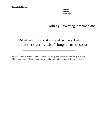 NOTE: Time required to do a Mini-Q varies greatly with skill level, grade, and DBQ experience. Time range is generally two to five 45 minute class periods.