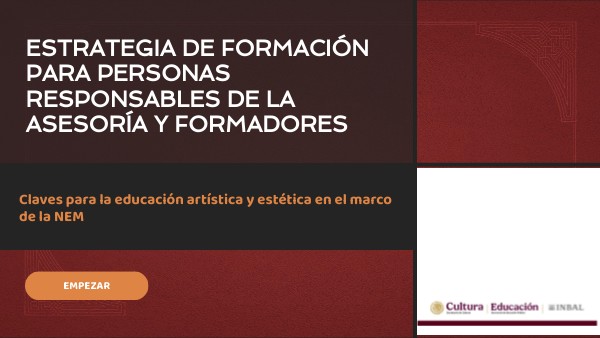 En el caso del curso Claves para la educación artística y estética en el marco de la NEM entendemos a la persona responsable de la asesoría como un acompañante pedagógico responsable de orientar a las y los docentes en su proceso formativo dentro del curso.