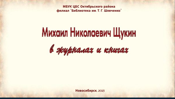 Представляем вам виртуальную книжную выставку, посвященную жизни и творчеству Михаила Николаевича Щукина. Его вклад в развитие сибирской литературы неоценим. Через свои книги он открывал нам глубину и многогранность этого удивительного региона, его историю, его душу. К сожалению, 2 февраля 2025 года жизнь Михаила Николаевича оборвалась. Эта утрата стала поистине огромной потерей не только для его близких и друзей, но и для всего культурного сообщества.