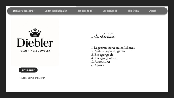 1. Logoaren izena eta zailakerak 2. Zertan inspiratu garen 3. Zer egongo da 4. Zer egongo da 2 5. Autokritika 6. Agurra