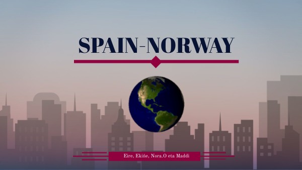 Spain: oceanic climate Summers: hot (35°C) Winters: relatively cool (15°C) Heaviest rainfall in october Norway: highland climate Summer: quite cool (18°C) Winters: much colder (-7°C) Heaviest rainfall in January