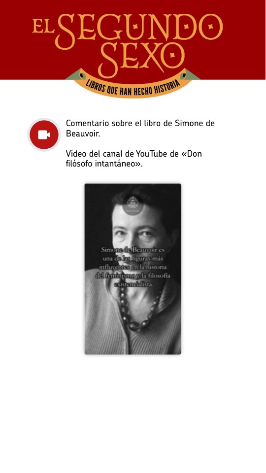 Comentario sobre el libro de Simone de Beauvoir. Vídeo del canal de YouTube de «Don filósofo intantáneo».