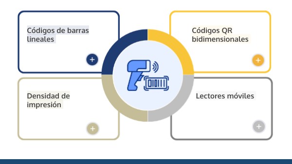 Los códigos QR bidimensionales superan las limitaciones de capacidad de los códigos lineales, almacenando hasta 3000 caracteres alfanuméricos en un espacio reducido. Su corrección de errores incorporada permite la lectura correcta incluso con daños del 30% del código, característica especialmente valiosa en condiciones de transporte adversas.