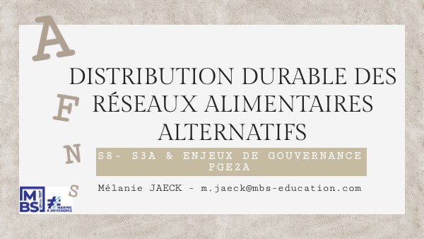 Thème : spécificités dans les systèmes agroalimentaires alternatifs : * Notion d’hybridité * Promesse de différence * Stratégie de distribution * Implication des parties prenantes Activités à réaliser :