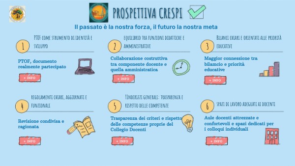Il Piano dell'Offerta Formativa rappresenta il cuore dell'identità della scuola. Desideriamo che sia un documento realmente partecipato, in cui la progettualità didattica dei docenti trovi spazio e coerenza con le scelte organizzative con le risorse disponibili. È auspicabile promuovere un monitoraggio costante per assicurare che le azioni previste siano effettivamente realizzate e valorizzate.
