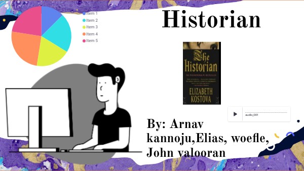 An Historian is a person who constantly analyzes and research about the past, present, and future. They learn about the past by writting about it using a variety of sources like documents, artifacts, and records to preserve the past events which shaped the present.