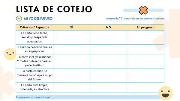 Arrastra la "X" para valorar los distintos campos.