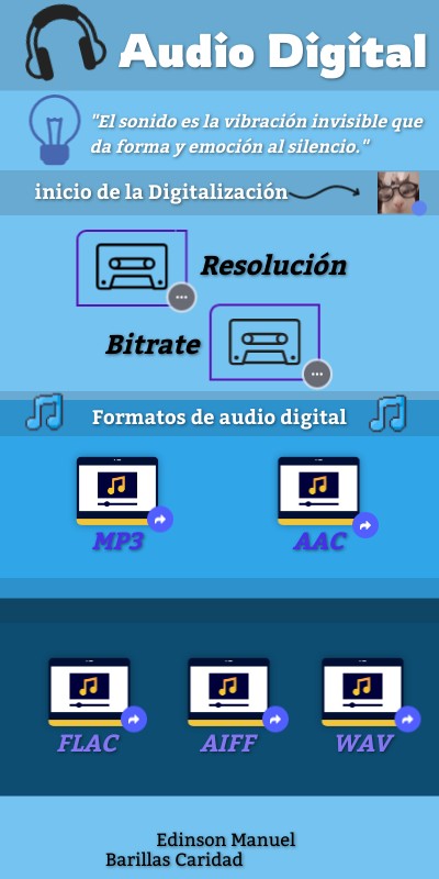 El sonido digital es la representación de una onda sonora convertida en un formato de datos (1;0) mediante el proceso de digitalización. Permitiendo que esta información sea almacenada, manipulada y reproducida por sistemas informáticos y dispositivos electrónicos con alta fidelidad y sin la degradación física asociada a los medios analógicos.