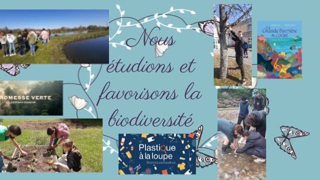 Des abris à coléoptères, coccinelles et pollinisateurs ont été installés par les éco-délégués Des nichoirs à oiseaux ont été installés ( en bois et en bouteille et matériaux recylés) ainsi que des mangeoires pour l'hiver