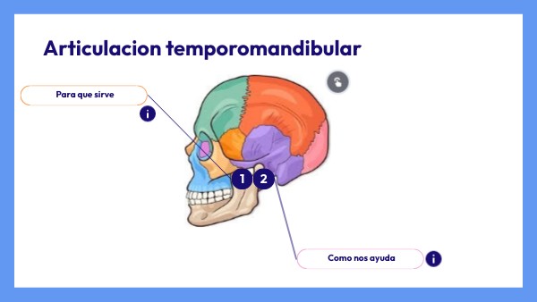 Articulación temporomandibular * Es la articulación que está formada por la parte superior de la mandíbula y el hueso temporal del cráneo💀.