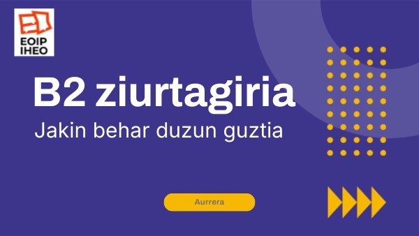 Aurkezpen honetan, B1 titulua lortzeko egin beharrekoaren laburpena topatuko duzu. Informazioa oso-osorik hemen topatuko duzu.