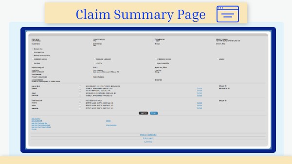 Claim Summary Page