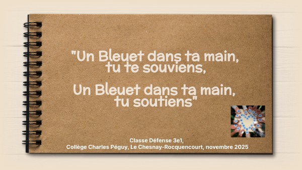 "Un Bleuet dans ta main, tu te souviens, Un Bleuet dans ta main, tu soutiens"
