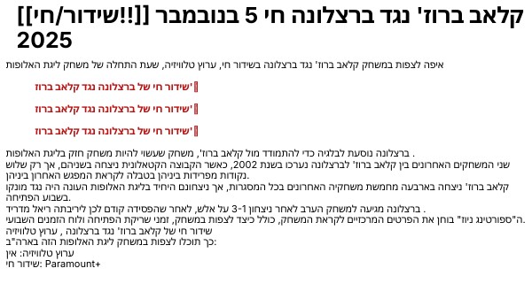 [[שידור/חי!!]] קלאב ברוז' נגד ברצלונה חי 5 בנובמבר 2025