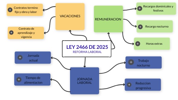 El horario nocturno se amplia ya que ahora las horas nocturnas comienzan a las 7:00pm hasta las 6:00am(anteriormente comenzaba a las 10:00pm) no cambia el pago de recargo nocturno el cual se sigue pagando al 35% hora ordinaria. Estos cambios seran efectivos y entrara en vigencia a finales de 2025 y principios de 2026.