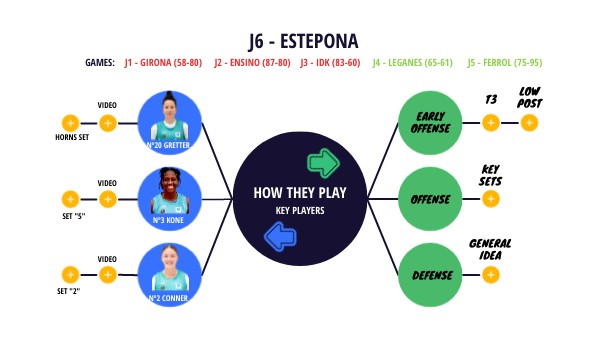 GAMES: J1 - GIRONA (58-80) J2 - ENSINO (87-80) J3 - IDK (83-60) J4 - LEGANES (65-61) J5 - FERROL (75-95)