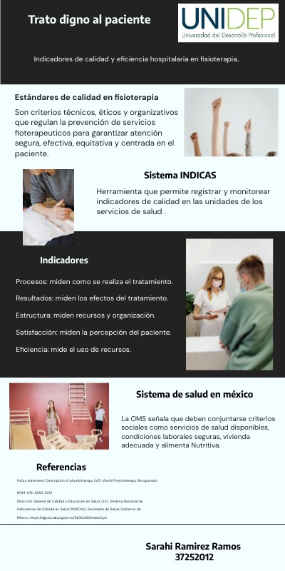 Policy statement: Description of physiotherapy. (s/f). World Physiotherapy. Recuperado NOM-016-SSA3-2012 Dirección General de Calidad y Educación en Salud. (s.f.). Sistema Nacional de Indicadores de Calidad en Salud (INDICAS). Secretaría de Salud, Gobierno de México. https://dgces.salud.gob.mx/INDICASII/index2.ph