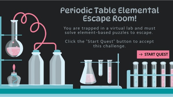 You are trapped in a virtual lab and must solve element-based puzzles to escape. Click the "Start Quest" button to accept this challenge.