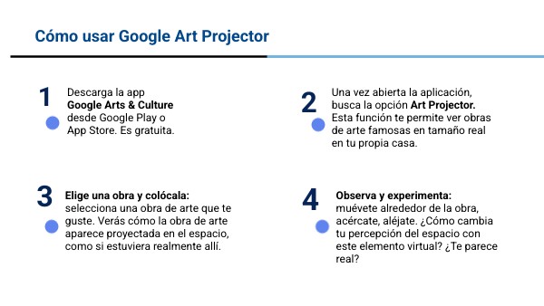 Descarga la app Google Arts & Culture desde Google Play o App Store. Es gratuita.