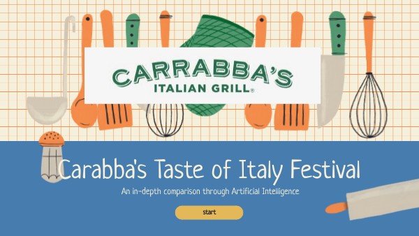 - OpenAI. “Promotional graphic for Carrabba’s Italian Grill’s ‘Taste of Italy’ campaign.” ChatGPT, image generated by GPT-5, 5 Nov. 2025, https://chat.openai.com/