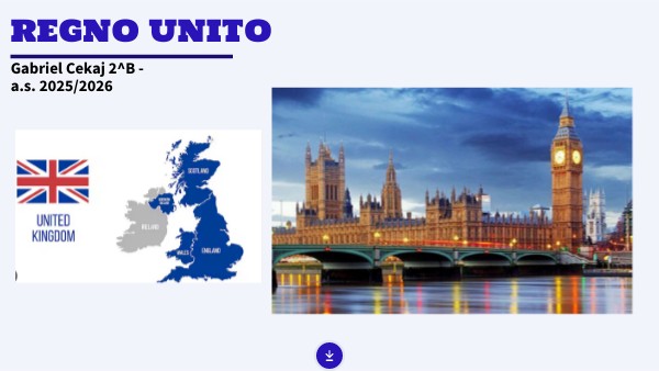 Il Regno Unito è una monarchia parlamentare. Il paese è nel 1973 entrato a far parte della CEE (comunità economica europea) che nel 1992 si é trasformata nell'Unione Europea. Il 23 giugno 2016 la maggioranza dei cittadini inglesi ha votato per la Brexit (uscita da Euro). La sua moneta è infatti la sterlina. Il simbolo è: a sinistra un leone coronato, che simboleggia l'Inghilterra; quello di destra è un unicorno, che simboleggia invece la Scozia. Secondo la leggenda un unicorno libero era considerato un animale particolarmente pericoloso, per cui l'unicorno britannico è incatenato.