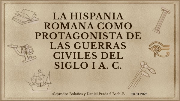 Durante el siglo I a. C., la República romana atravesó una profunda crisis política, social y militar que culminó con su transformación en Imperio. En medio de las luchas entre facciones, generales y líderes políticos, Hispania —territorio ya conquistado, pero todavía en proceso de integración— desempeñó un papel de gran relevancia. Lejos de ser un escenario secundario, Hispania fue protagonista de los principales conflictos internos de Roma. Su posición geográfica estratégica, su riqueza mineral y agrícola, y su capacidad para reclutar tropas hicieron que la península ibérica se convirtiera en un escenario decisivo de las guerras civiles.