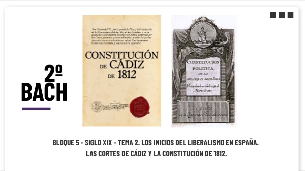 BLOQUE 5 - SIGLO XIX - TEMA 2. Los inicios del Liberalismo en España. Las Cortes de Cádiz y la Constitución de 1812.